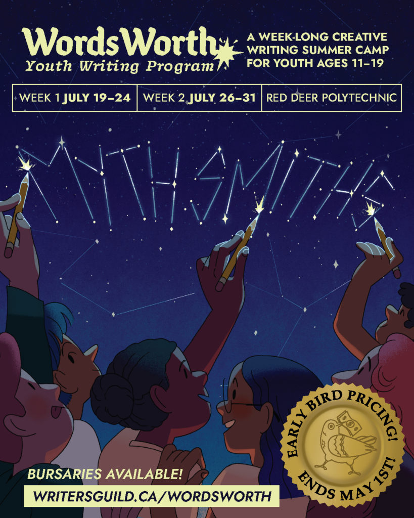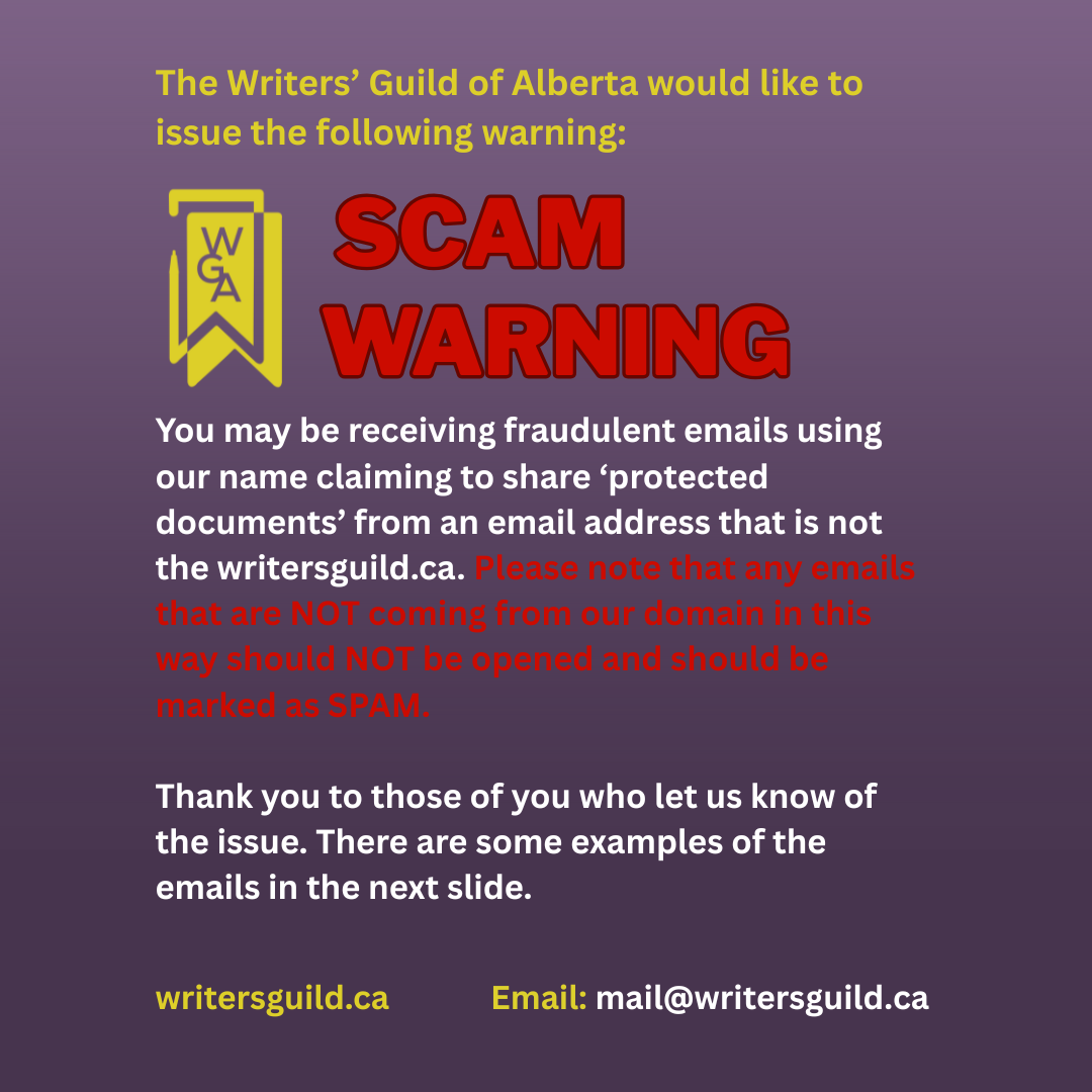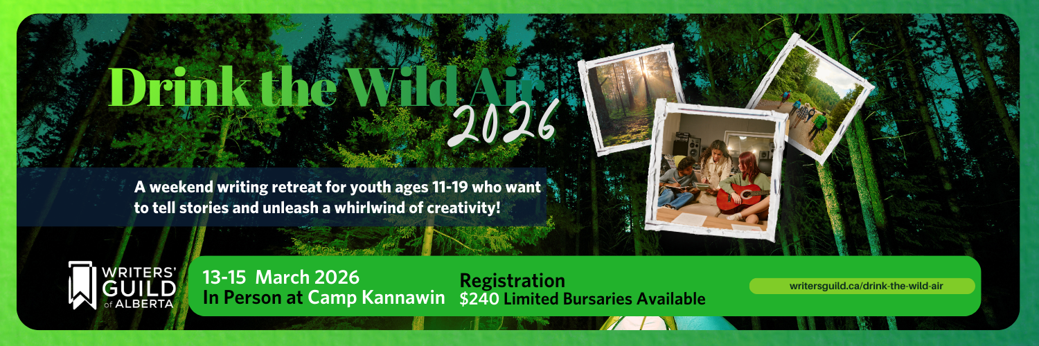 The Writers’ Guild of Alberta gratefully acknowledges our place in the homelands of Indigenous peoples within Mohkínsstsisi, amiskwaciy-wâskahikan, and rural and remote regions across the traditional territories of Treaties 4, 6, 7, 8, and 10. In an ongoing process of seeking truth and reconciliation, the WGA commits to building trust, cultivating meaningful relationships, and deepening our understanding of our treaty responsibilities on this land and in community. We commit to our role as Treaty People by listening to and following the lead of First Nations, Inuit, and Métis peoples. We hold profound gratitude for the First Nations, Inuit, and Métis peoples, including the storytellers, who have long cared for the more-than-human communities that have inspired so many authors across the province. The WGA believes that storytelling is a way forward, allowing non-Indigenous and Indigenous storytellers to learn from and connect with each other.