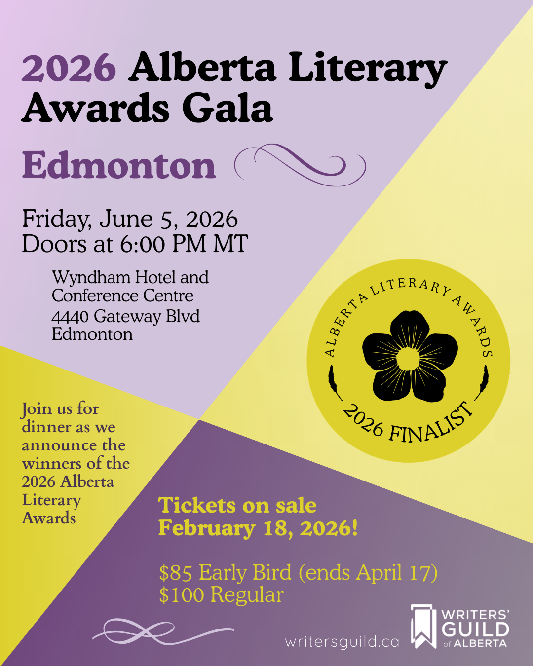The Alberta Literary Awards Gala will be taking place on Friday, June 5th, 2026 in Edmonton, Alberta! Join us as we celebrate the finalists and announce the winners of the 2026 Alberta Literary Awards and connect with your Alberta literary community.