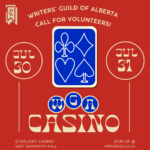 WGA Casino Night FundraiserJuly 30 – 31, 2026 Varying Shifts (Morning, Evening, and Overnight)Starlight Casino, West Edmonton Mall 8882 170 St NW #2710Edmonton The Writers’ Guild of Alberta’s casino fundraiser will be at the Starlight Casino at West Edmonton Mall (second floor) in Edmonton from July 30 – 31, 2026. By partnering with a local casino, the WGA provides staffing over this two-day period through members and volunteers in exchange for receiving a share of the casino profits. Our casinos