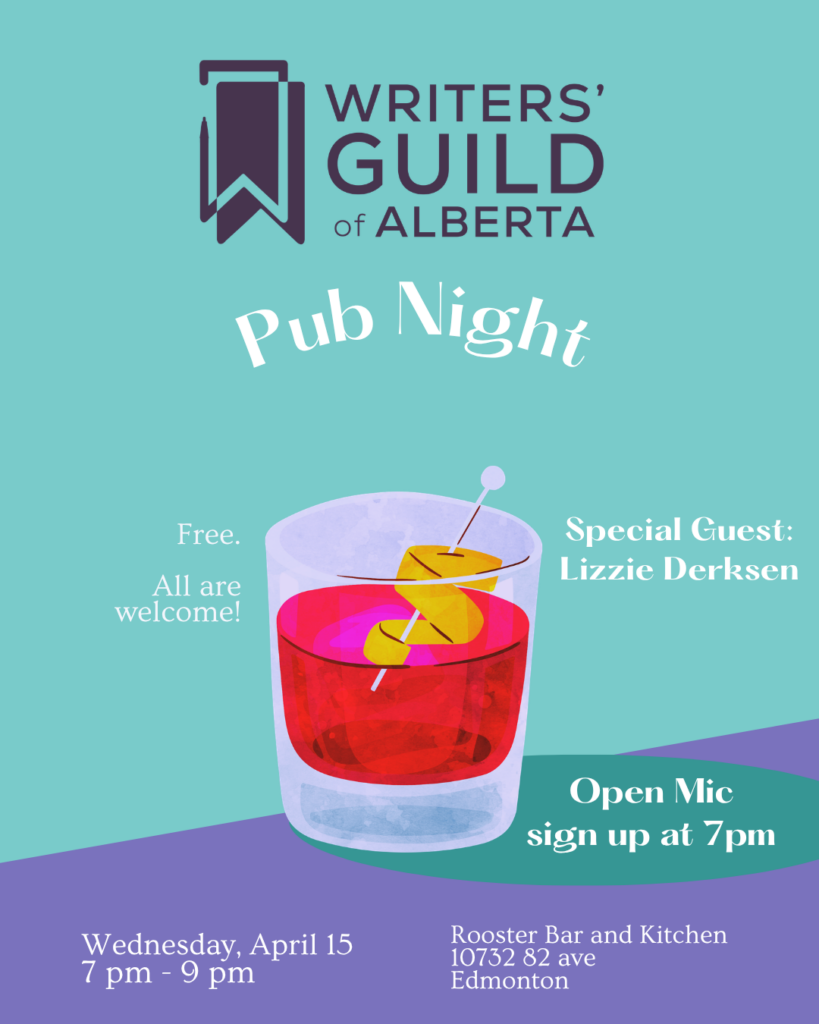 Join us for the first Pub Night of spring and celebrate with your fellow writers and friends. This month we are joined by a special guest, Lizzie Derksen, who will be talking about the State of Creativity in 2026. As always, the open mic sign up begins at 7:00 PM MT and newcomers get an extra special welcome!