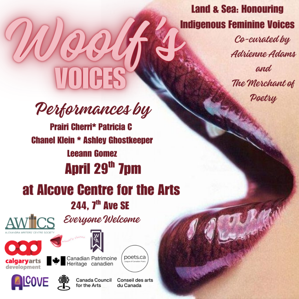 Join us for our Woolf’s Voices 42! Come honour National Poetry Month with us with a special showcase of Land & Sea: Honouring Indigenous Feminine Voices – Woolf’s Voices 42!! Come hOwl!